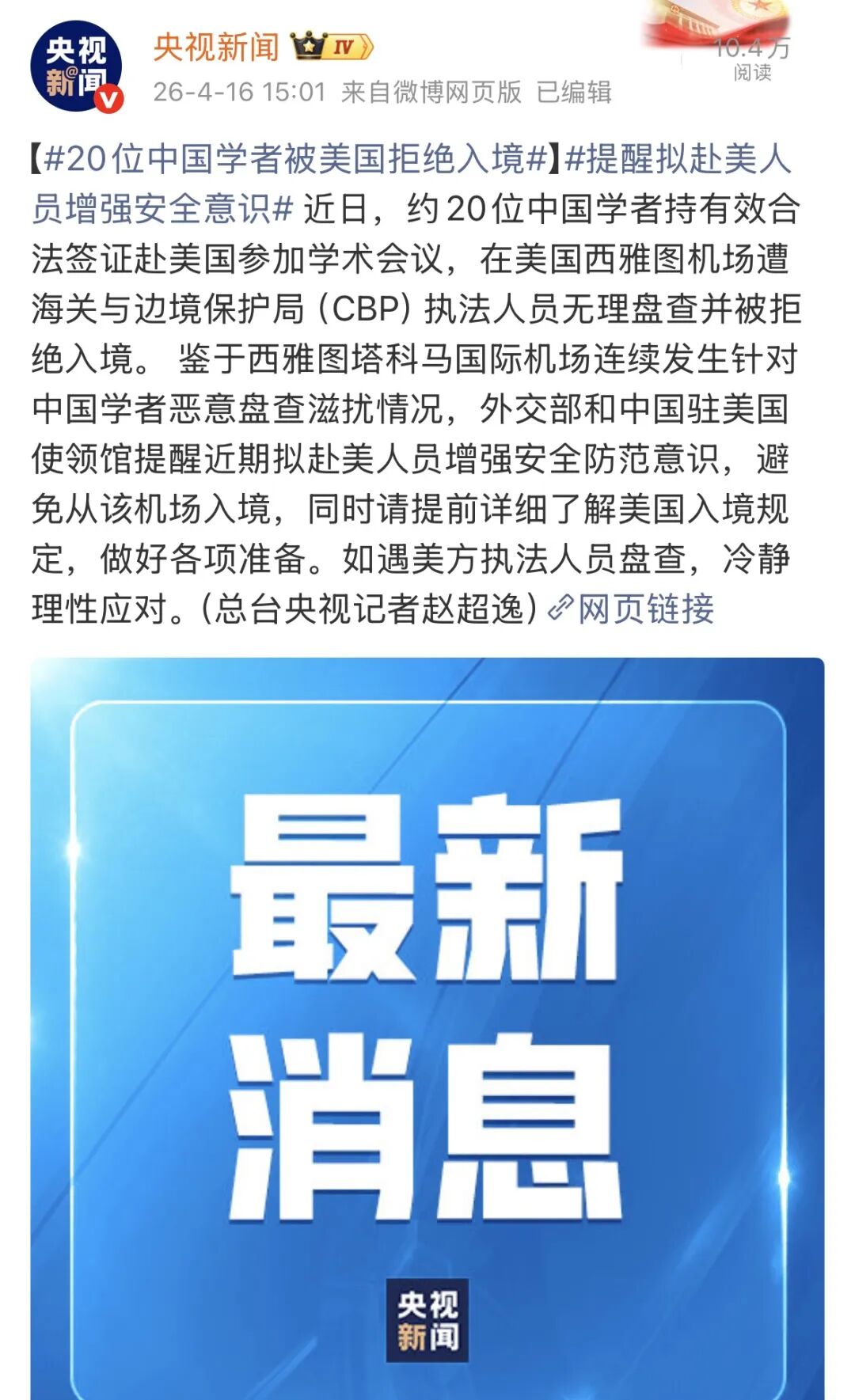 有20名中国学者,均持有合法有效的美国签证,初衷是前往美国参加学术会议、开展学术交流,却在抵达西雅图塔科马国际机场后,遭遇了美国海关及边境保卫局的无端盘查,最终全部被拒绝入境,无奈折返。